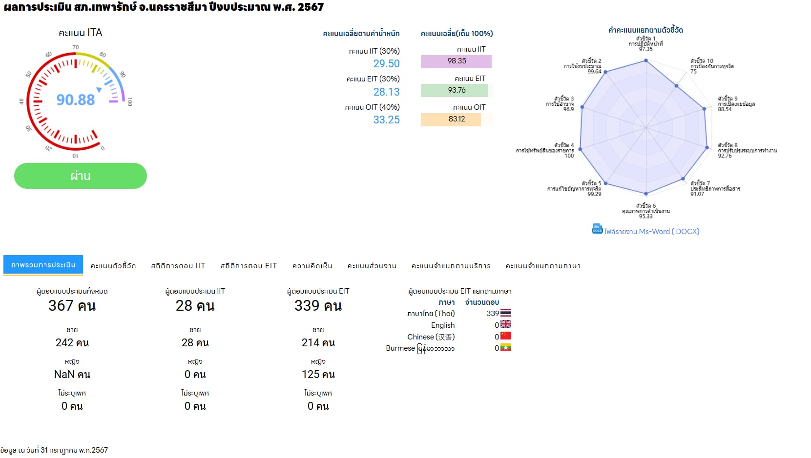 ผลการปฏิบัติแต่ละสายงาน