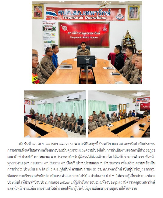 วันนี้(3 ต.ค.67)เวลา 10.30 น. พ.ต.อ.หิรัณยสุทธิ์ อินทร์ใย ผกก.สภ.เทพารักษ์ ได้เรียกข้าราชการตำรวจ สภ.เทพารักษ์…